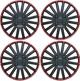 14" Black Color Mat Finished Hubcaps Wheel Covers with Red Accent Brand New Set of 4 Pieces WC-8BK-14