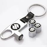Suzuki Tire Stem Valve Caps and Chrome Keychain Combo Set